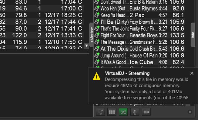 Also the videoMaxMemory setting is set at Automatic (120) with no visible way I can see of changing it - How does one change it within VDJ if possible to prevent the contiguous memory problem I am seeing more frequently now? It seems the computer works ok forawhile but over time it degrades to the point where the memory error comes up at every transition or you load a music video on the other deck or as the "on deck" video...