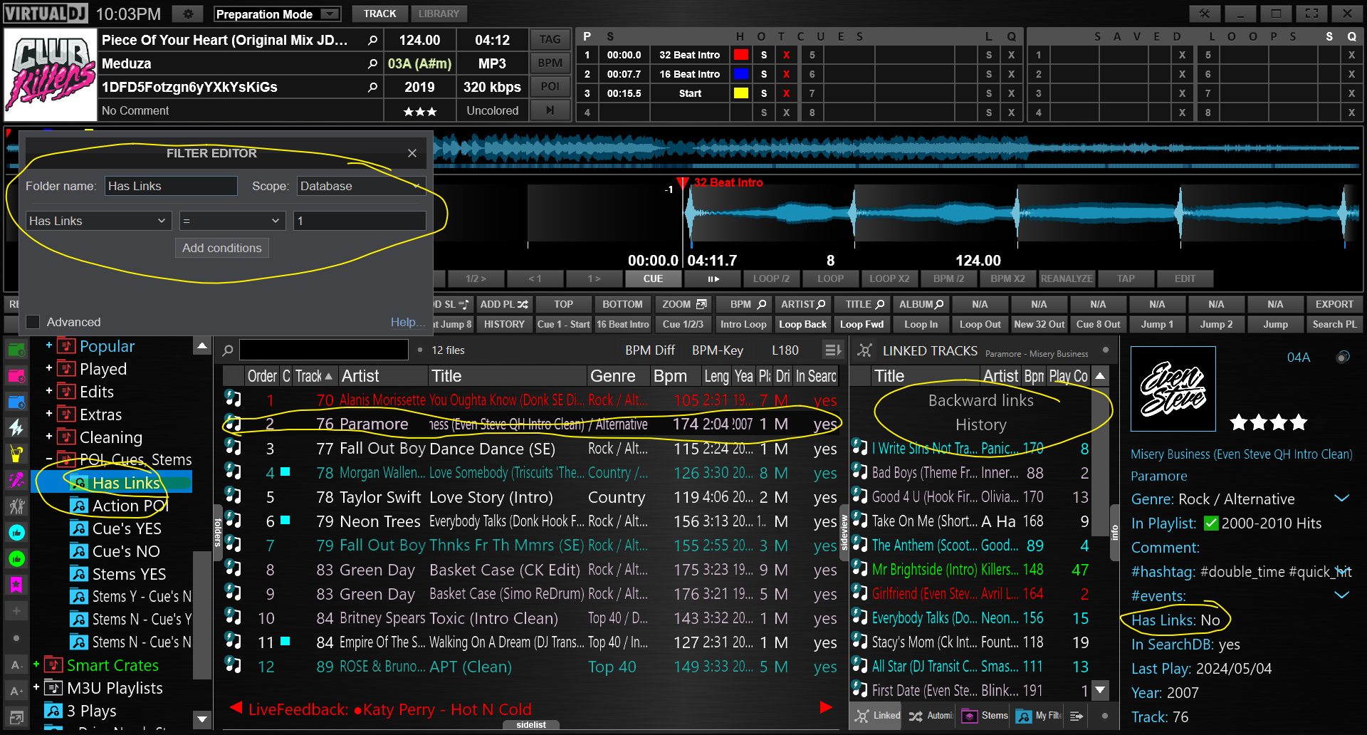 Doing some tag and DB cleanup and still seem to have some weird Links issue. This could be user error but I cant figure it out. I have a filter on songs that have "have Links" but the info screen says no links. Sideview shows only history. Some say backwards link and show none. Some say no linked tracks and still show up in the filter. I confused as to why they show up in the filter but appear to have no links