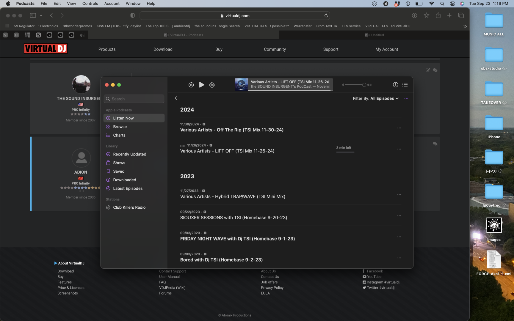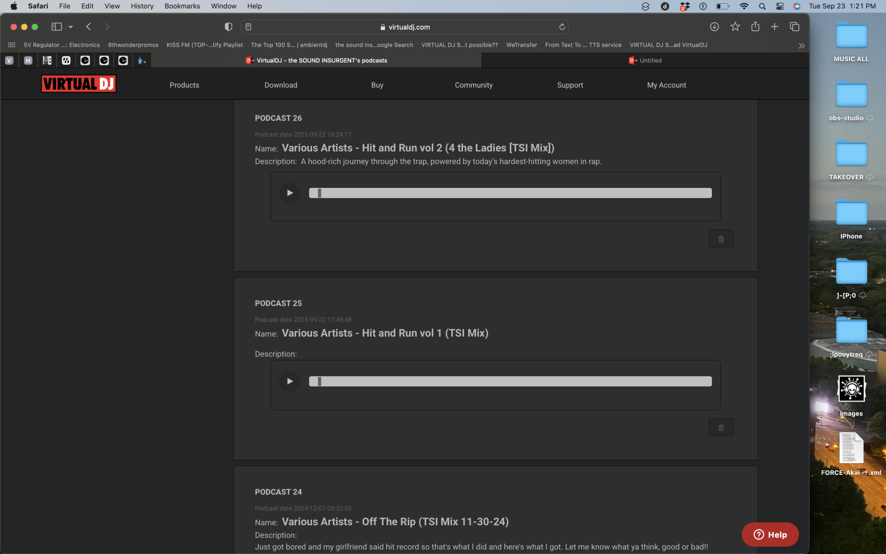 They're here https://www.virtualdj.com/user/the_SOUND_INSURGENT/podcast.html