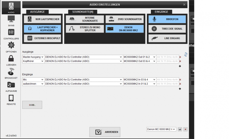 Setup in VDJ sieht so aus!