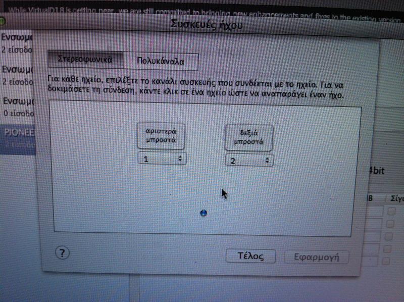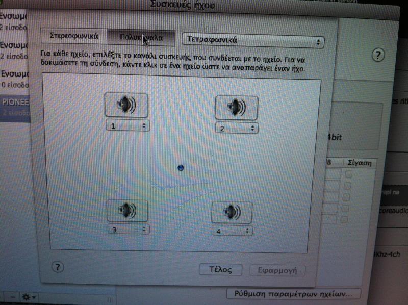 Anoikse to Audio Midi Setup apo Applications-->Utilities, kanel klik stin Ergo. Sto deksi kommati, vevaiwsou oti einai 44Khz-4ch