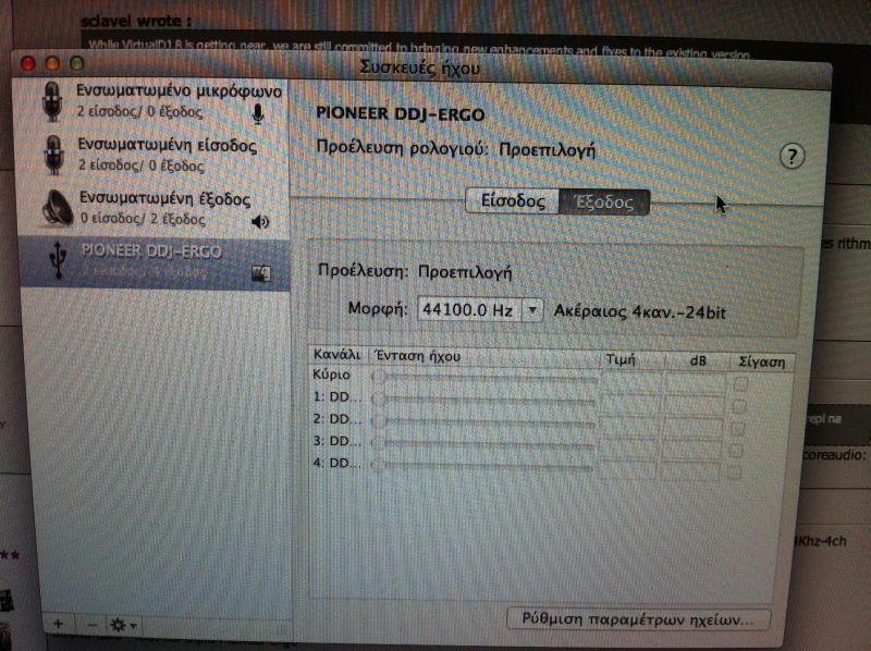 kati exo piraksi stin karta ixou stis ri8misis kai mou vgazi afto to minima otan anigo to vdj .error in the sound driver of coreaudio: your soundcard is probably not connected , or the settings are incorretkalimera pedia. pios mpori na me voithisi me tis rithmisis sto mac book pro tis kartas ixou me ddj ergo v pies inai i sostes rithmisis pou prepi na kano stin karta ?