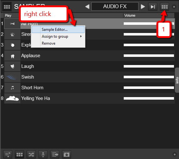 The sampler is now built into the sidelist (next to your filelist).