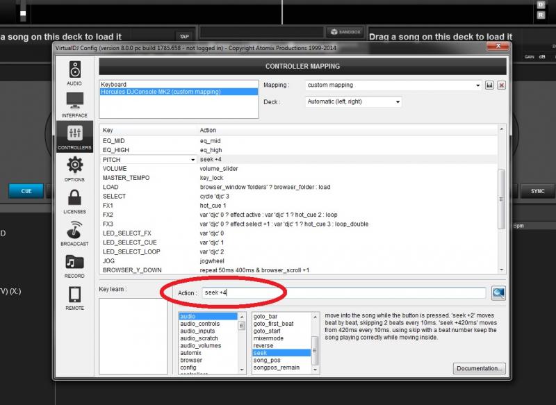 Θα βρεις το κουμπί του pitch+ (δεν ξέρω πως το γράφει) και στο Action θα βάλεις "seek +4" (χωρίς τα "" φυσικά).