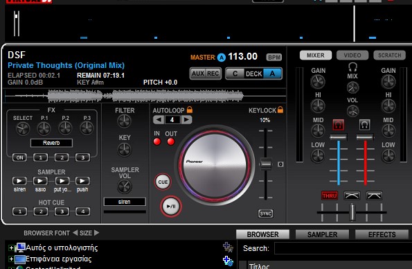 Καλησπερα σε ολους.Εχω ενα Laptop me WIN 7 4GB RAM KAI CPU I5.Σε αυτο εχω εγγαταστησει κανονικα το VDJ LE που ηταν μεσα στη συσκευασια του ΕRGO V που αγορασα και λειτουργω με το ανωτερο set.ΟΛΟΣ Ο ΑΝΩΤΕΡΟ ΕΞΟΠΛΙΣΜΟΣ ΔΕΝ ΠΟΛΥΔΟΥΛΕΥΕΥΑΙ ΚΑΙ ΤΟΝ ΔΙΑΤΗΡΩ ΚΑΝΟΝΙΚΑ ΕΝΤΟΣ ΣΠΙΤΙΟΥ.Την τελευταια φορα που επαιξα μουσικη ME TO KEYLOCK ENERGO KAI STA 2 DECK ενω φορτωνα ενα κομματι σε ενα απ τα 2 deck tou Vdj le και ενω αυτο ξεκινουσε κανονικα η θεση του στροφομετρου στην οθονη του vdj le ηταν διαφορετικη απο αυτη που ειχα θεσει εγω πραγματικα στο στροφομετρο του Εrgo V.Οταν δε διορθωνα με το ποντικι την θεση του στροφομετρου στο VDJ LE η μετακινοντας λιγο πανω η κατω το στροφομετρο στο Εrgo V η στροφες διορθωνοταν στο επιπεδο που ηθελα εγω και μετα απο λιγο παλι ξανα το ιδιο