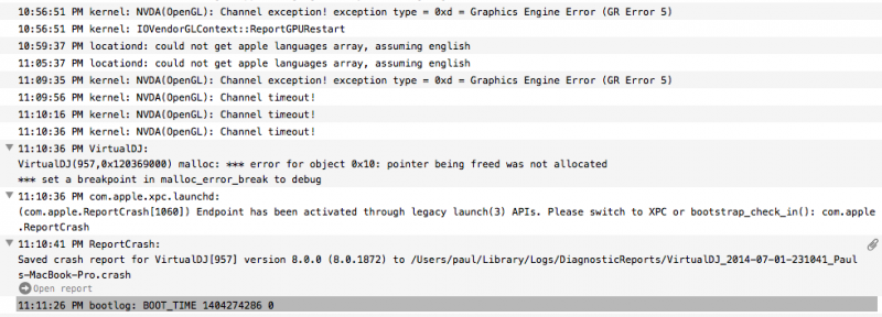 Also I have my first VDJ crash log on my mac since I rebuilt it. How can I get that to you guys, I don't see a way to send it from the console.