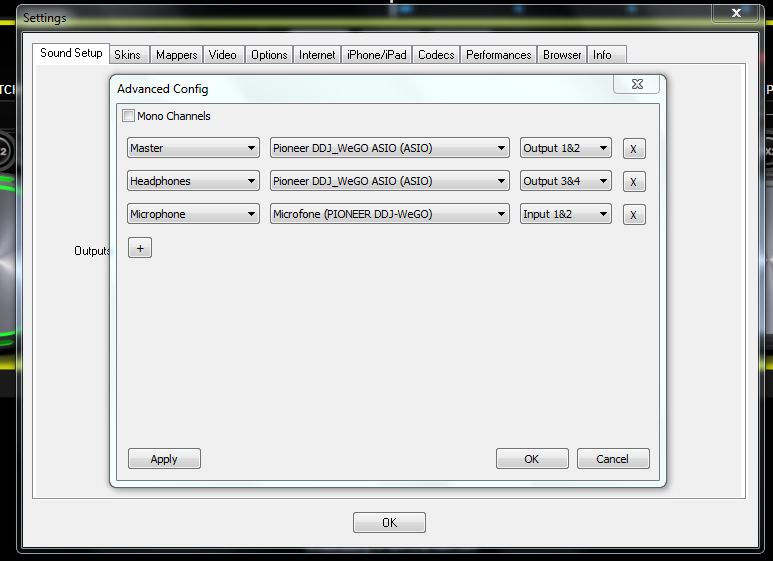 Você pode também usar conexões Y na saída master da controladora e enviar simultaneamente o áudio para a entrada de uma outra placa de som, e capturar o áudio desta placa via loopback.