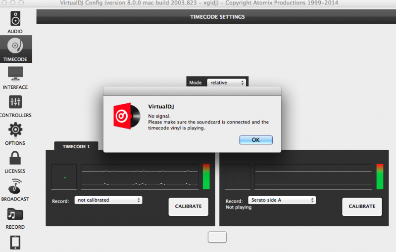 Not sure if its a bug or just left out but when I am using a Traktor timecode the "Calibrate" button does not work. An error pops up saying VDJ doesn't know this timecode but when I select it from the drop down it works.