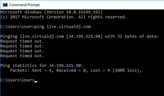 I also tried ping live.virtualdj.com from terminal and it continues to say "request timeout for icmp_seq XXX"