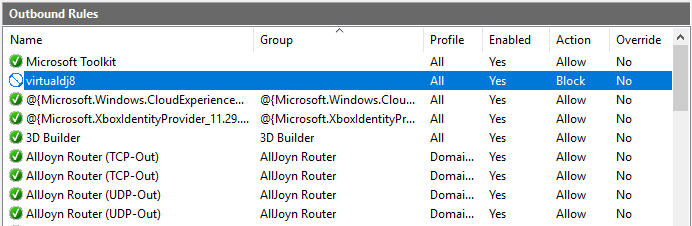 Now i saw that Vdj is blocked in the outbound and inbound rules in Win Defender....but how to change that...remove the rule?....