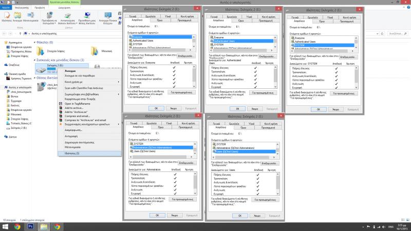 Τώρα σου παραθέτω όλους τους χρήστες που έχει το σύστημα στον δίσκο E (750 GB) και όλες τις παραμέτρους που έχουν (βλέπε φώτο)
