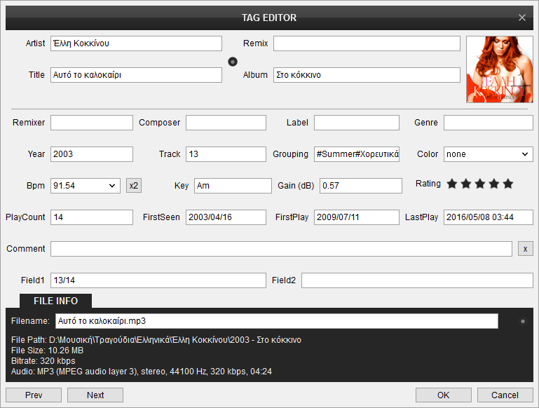 2) Για MP3 γράφονται όλα τα πεδία ΕΚΤΟΣ από τα: