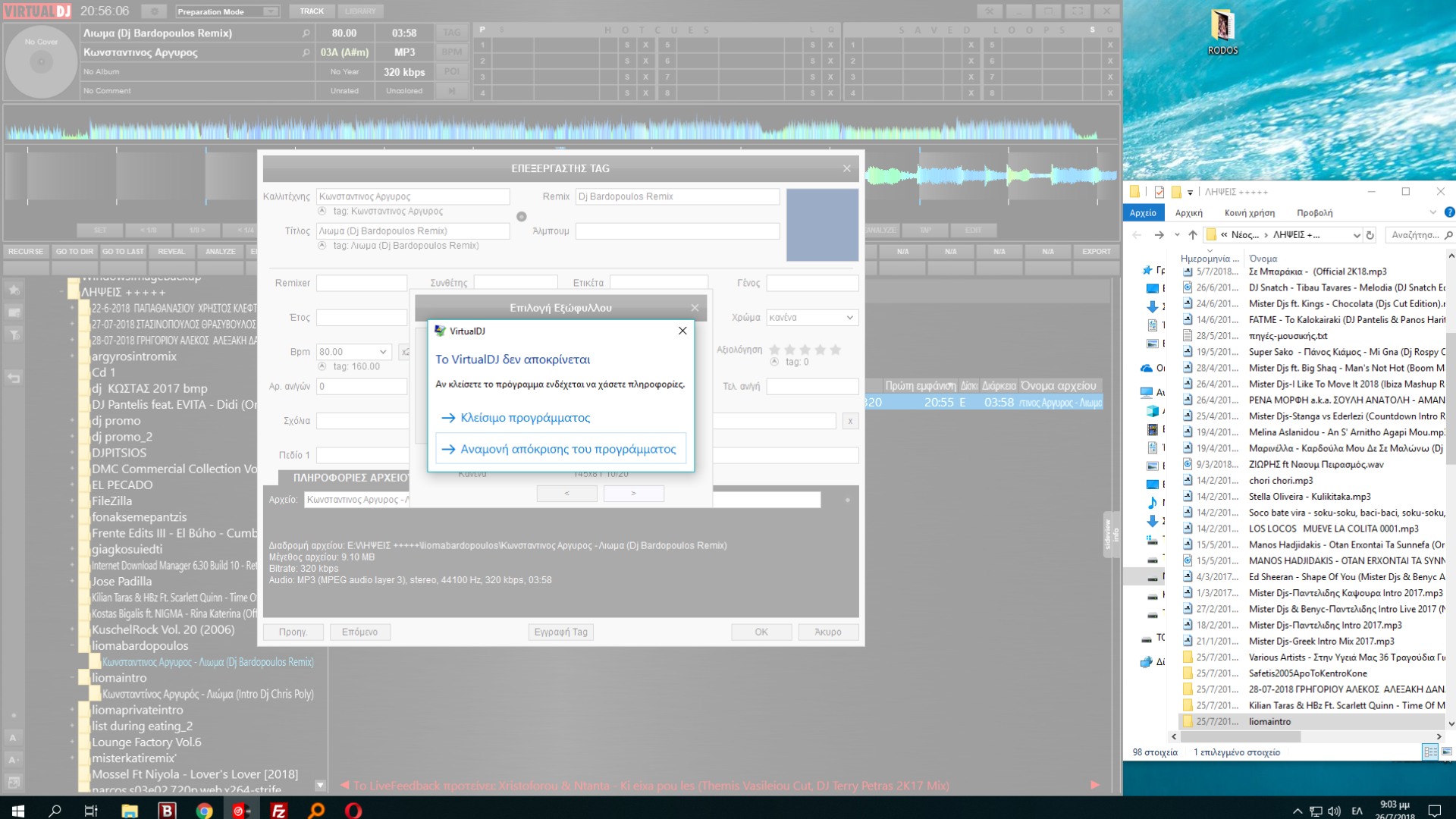 Καλησπέρα σας, μόλις ήρθε και η σειρά μου. Πριν λίγο και ενώ έκανα επεξεργασία στα tag ενός folder, το vdj κρασσαρε, συνδεδεμένο στο interrnet. Υπάρχει περίπτωση να μάθουμε τι έγινε απ' το log ??? (i5,8gb,win10 και δεν έτρεχε άλλο πρόγραμμα εκείνη την ώρα)