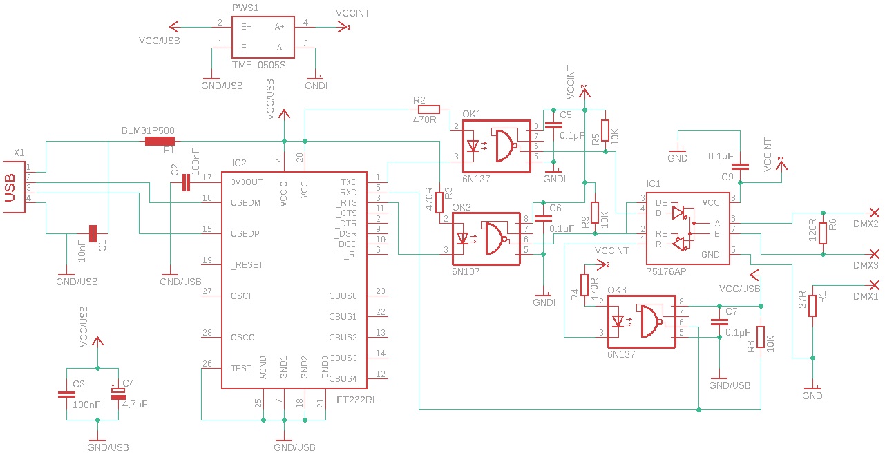 το δικό μου Enttec open DMX όπως το σχεδίασα πριν απο μερικά χρόνια, με γαλβανική απομόνωση