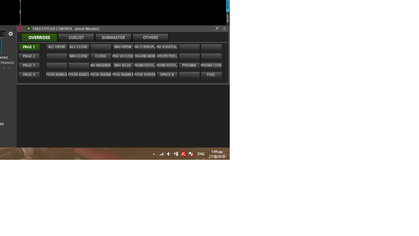 Π.χ.: Θες να ενεργοποιήσεις/απενεργοποιήσεις κάποια overrides ? Φτιάξε 1 σελίδα PADS στον controller σου. Επίσης το παράθυρο των Overrides ΔΕΝ χρειάζεται να είναι ανοιχτό (στο Freestyler) για να δουλέψουν τα overrides.