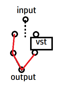 the block diagram for the signal path, the switch can either be full feed to the vst, or bypass the vst and let the tail play out.