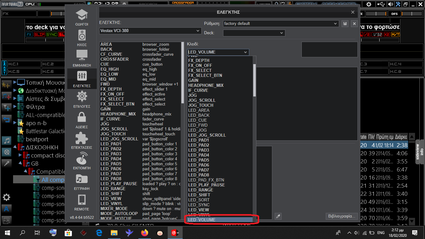 Πήγαινε στους mappers, κάνε κλικ στο κουτί με τα κλειδιά και επέλεξε το LED_VOLUME
