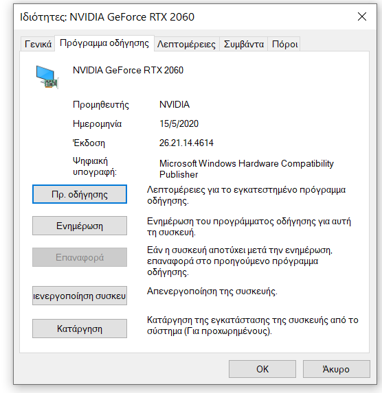 Μπάμπη ΄μου λέει ότι είναι ενημερωμένη η κάρτα γραφικών.
