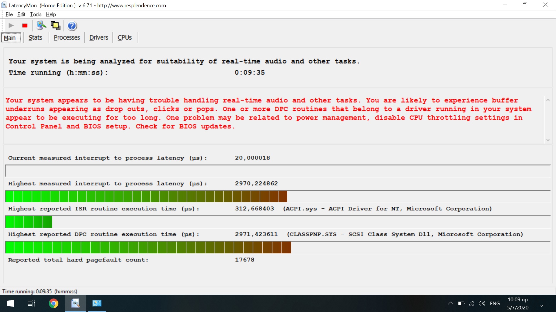 Καλημέρα στο forum.Αντιμετωπίζω πρόβλημα με κοψίματα στον ήχο σε ανύποπτο χρόνο Χρησιμοποίησα το Latency monitor χωρίς να έχω ανοίξει κάποιο πρόγραμμα και βγάζει μηνύματα που επισυνάπτω στην παρακάτω φώτο.