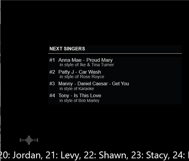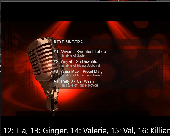 @2Legit see the karaoke options [dot above karaoke list], for singers list display , video skins are available to dl
