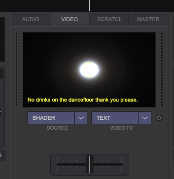 But since I'm not using video at all and only using the Video Shader while working, I need to turn the text on "downstream' from the individual decks, as I frequently switch between Decks 1 and 3, and 2 and 4. Playing the text from the upstream deck just means it goes away when I swithch even or odd # decks.
