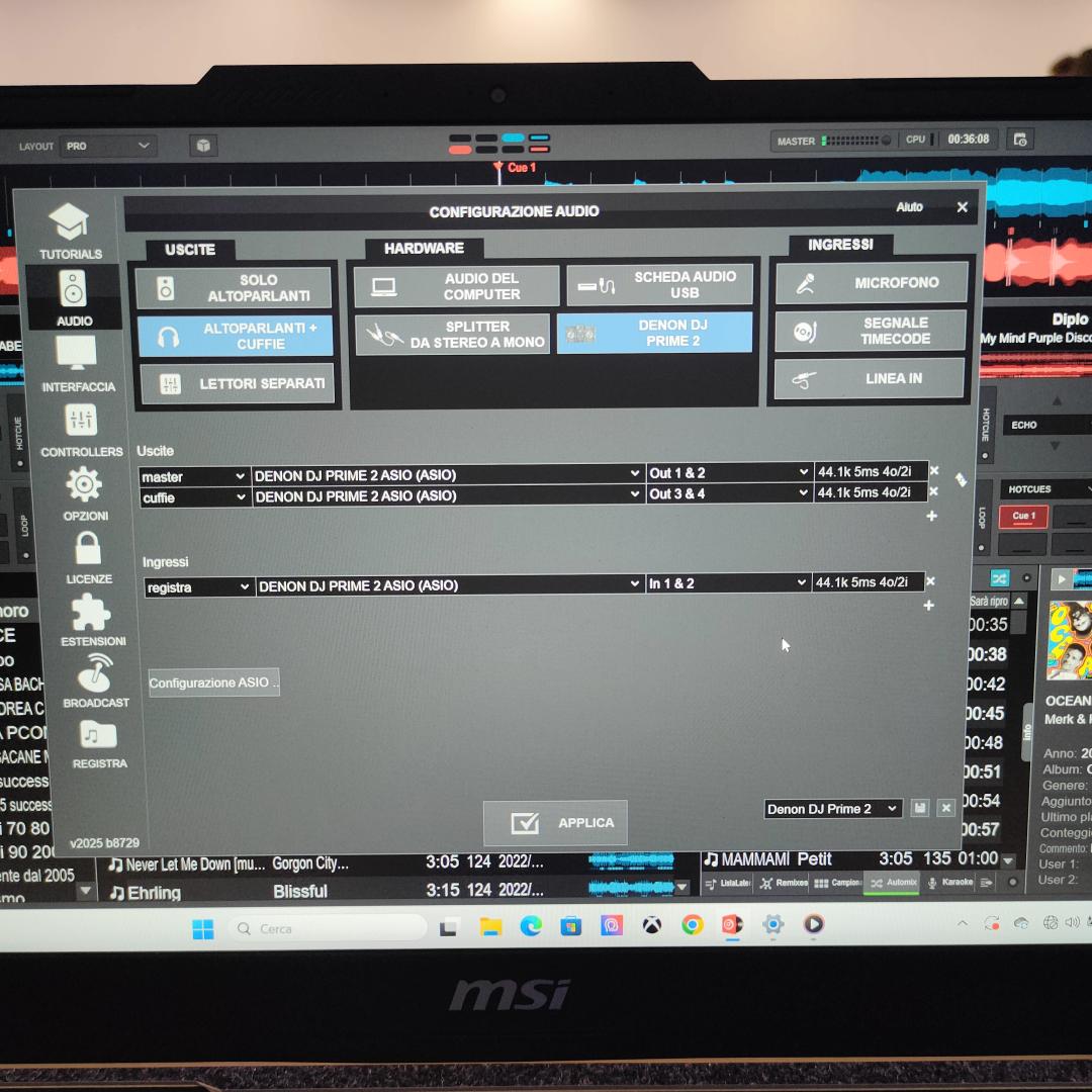 Piccoli clip audio(come dei Picchi leggeri)e ad un certo punto della serata l'audio va via ma la consolle continua a girare, posso anche cambiare brano ma l'audio non si sente più. Ho PC gaming nuovo e super performante e come consolle ho una denon prime 2. Qualcuno sa come risolvo ? Metto una una foto dei miei driver ASIO.