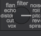 <text text="vocals\ncut\ndistorition\necho\nflanger\nfilter\nnoise\nroll\npitch\nreverb\nspiral" weight="normal" color="gray" fontsize="10"/>