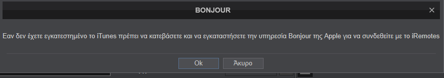 Αν χρησιμοποιείς το iRemote εγκαθηστάς το Bonjour Service στον υπολογιστή σου.
