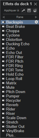Il y a une liste défaut (effets par défaut dans VirtualDJ), une liste de tous les effets legacy + effets installés + les nouveaux effets Pioneer et Rane :