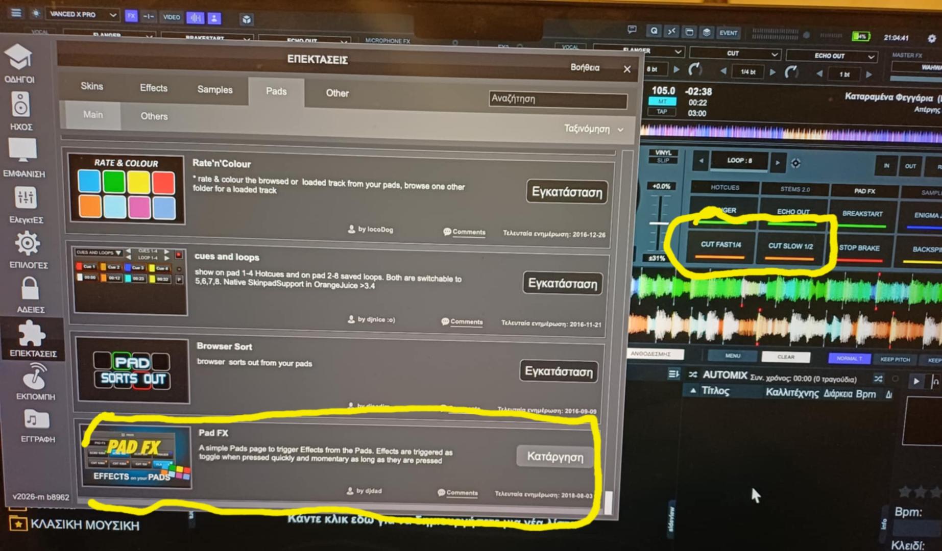 Μου κανει ένα πρόβλημα... έχω κατεβάσει απο της επέκτασης το pad effects που εχει στην φωτογραφία σε κίτρινο και... ουαν πατάω τα εφέ cut όπου έχω σε κίτρινο... τερματίζει της ρυθμίσεις και δεν κανει το cut όπου έκανε αλλα ακούγετε ένας θόρυβος... έψαξα να δω αν μπορώ να ρυθμίσω κατι αλλα δεν γίνετε... αν πατήσω το cut κανονικά απο επάνω απο τα εφέ δουλεύει μια χαρα ... απο της επέκτασης δεν δουλεύει όπως δούλευε κάνει σαν χαλασμένο