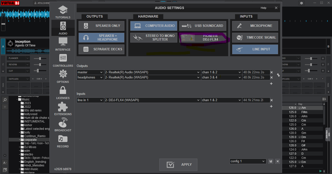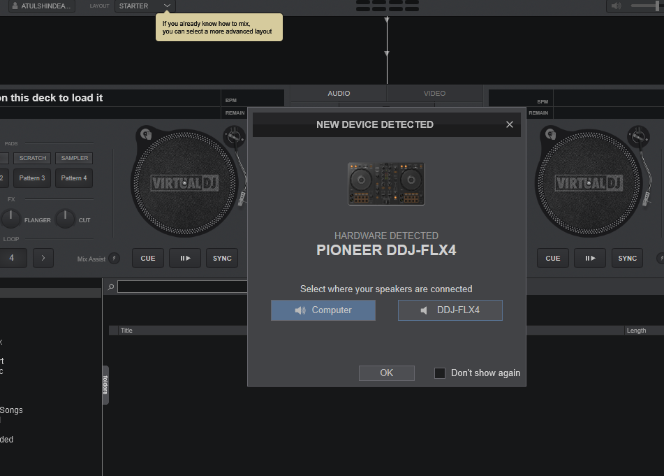 im trying operate Pioneer DDJ FLX4 with my laptop with Windows 11 OS. with licensed (Home)version of Virtual DJ Software. it was operating smooth till few days back. now its is not detecting sound card i guess. Attached image asks me to select where my speaker is connected but I'm not able to select DDJ-FL4. what might be the problem, and any solution..