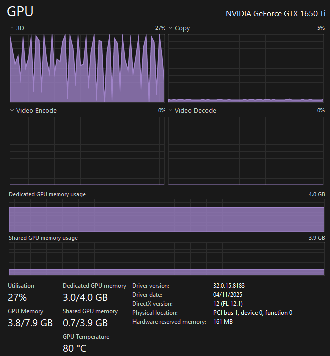 However my main thing now is the overall performance of preparing stems in the first place. I've tried various settings over many months & yet still when using the save prepared stems feature, the GPU seems to bounce on usage alot.
