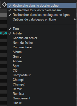 Il faut aller sur l'engrenage sur le Browser, un menu va s'ouvrir, il suffit de coché ce que vous voulez inclure dans la recherche :