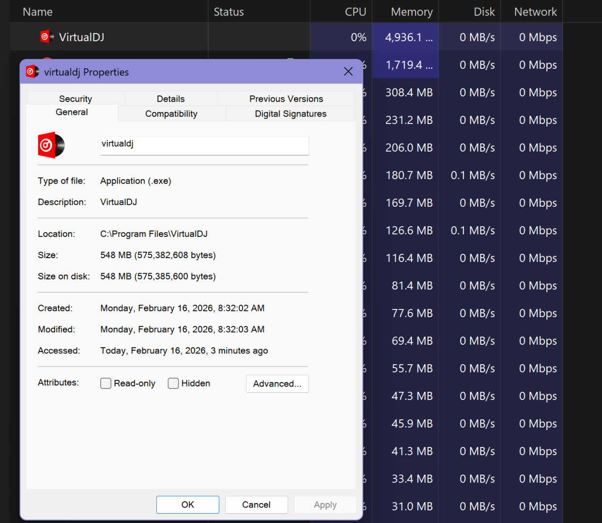 I have had this issue happen several times in the past day. I use VDJ, and exit it. Later I try to go back to it and I get the dialog box about it already running. I go to the Task Manager and try to end the task. But the VDJ orphaned process stays there.