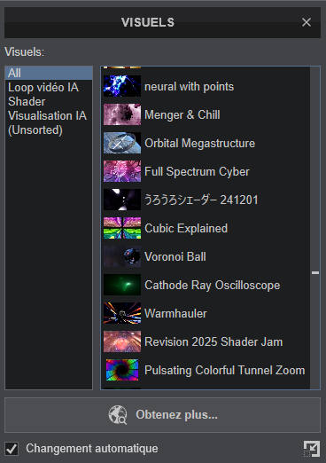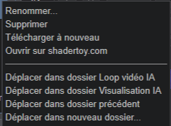 De plus si vous souhaitez téléchargé ou créer un nouveau fichier vidéo AI, visualisation AI ou simplement un nouveau Shader, mettez vous sur ce dossier avant de récupéré la/votre création, il se retrouvera automatiquement dans le dossier concerné.