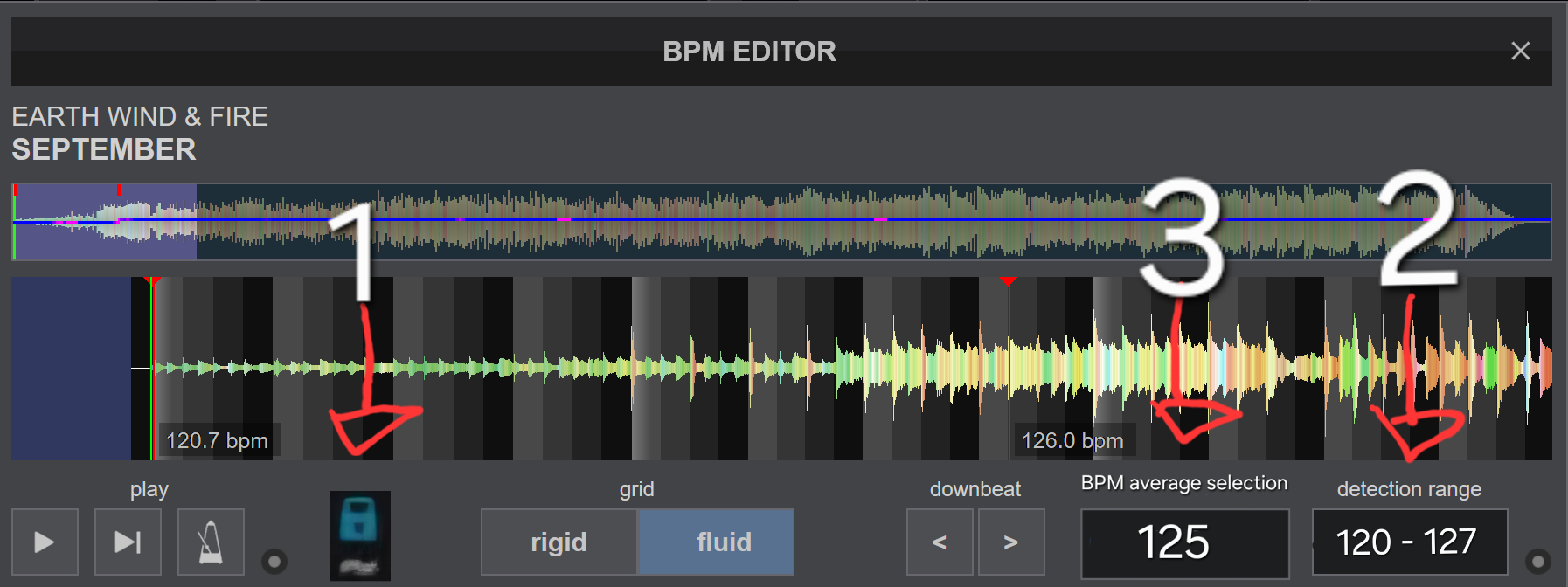 (without the track locked, one can see the BPMs displayed on the deck's platter as one plays the track, locking at any of those BPMs will adjust the entire track to that BPM that at that position, it is pressed/locked)