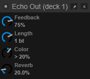 deck active padfx "echo out" 75% 1bt & wait 64bt & deck active padfx "echo out" off
